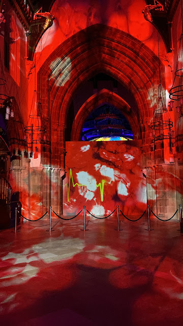 Following a route around the interior of this familiar place transformed by Peter Walker and his team with light and projections, I turned right to see King Richard III`s final resting place like never before, illuminated in blue and pink light an ethereal atmosphere was created and with a projection portraying the passage of time projected onto the cathedral wall in front of the Kings tomb, a very special "Leicester Moment" seemed to be unfolding in front of me in this sacred location.